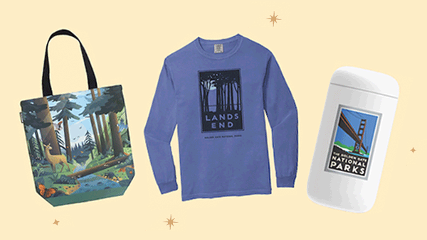 Shop park-inspired goodies from Dogpatch-based Rickshaw Bagworks, San Francisco Legacy Business and screen-printer Babylon Burning, popular SF-based company Fellow, and our classic bestselling Golden Gate National Parks Collection by Bay Area designer Michael Schwab.